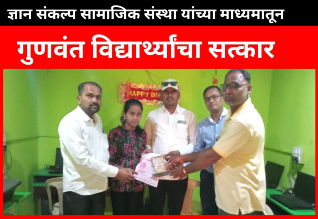 दौंड:डिजिटल वर्ल्ड अकोला आणि ज्ञानसंकल्प सामाजिक संस्था महाराष्ट्र राज्य दौंड यांच्या माध्यमातून Ccc+ कोर्स साठी घेण्यात आलेल्या स्कॉलरशिप परीक्षा अंतर्गत कु.योगेश्वरी दादा गारुडी दौंड (गोपाळवाडी) या विद्यार्थिनीचा गुणांनुसार मोफत संगणक प्रशिक्षण मध्ये नंबर आल्यामुळे तिचे ज्ञान संकल्प सामाजिक संस्थेचे अध्यक्ष श्री सदाशिव रणदिवे साहेब व इतर मान्यवरांनी तिचे अभिनंदन केले. पुढील वाटचालीसाठी शुभेच्छा दिल्या.